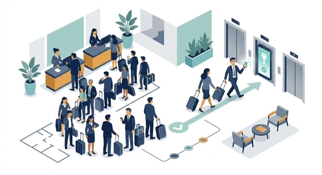 Guests who manage daily transactions through digital tools apply the same standard to hotel interactions. A check-in queue communicates that the property has not invested in processes proportionate to what it charges.