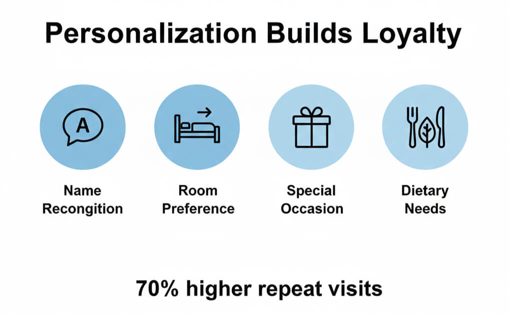 Actionable tip: Train staff to log guest preferences in an accessible system. Encourage proactive gestures such as remembering past requests or noting birthdays. Small surprises like favorite snacks or room placement preferences create lasting loyalty.